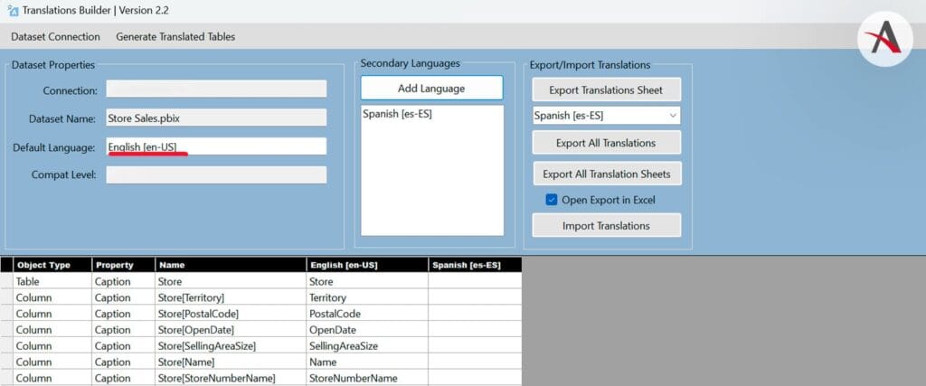 Translations Builder consiste en una herramienta diseñada para Power BI Desktop, cuyo propósito principal es añadir y actualizar las traducciones de las etiquetas y nombres en los modelos de datos de Power BI, como las tablas, columnas y medidas.