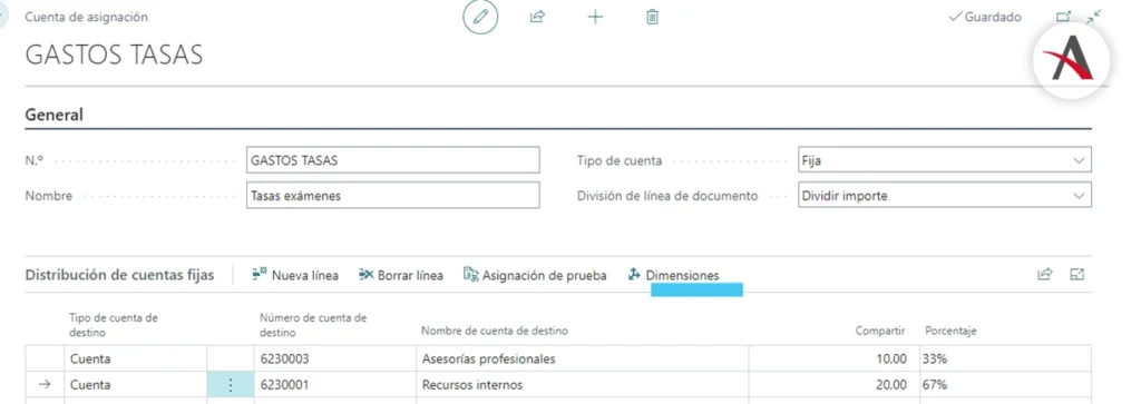 Cuando en Business Central se necesita realizar repartos de gastos e ingresos a través de dimensiones en distintos departamentos (por ejemplo) podemos utilizar esta opción: el uso de “cuentas estadísticas” se complementa con la función de “cuentas de asignación” al rellenar información cuando se contabiliza una factura.