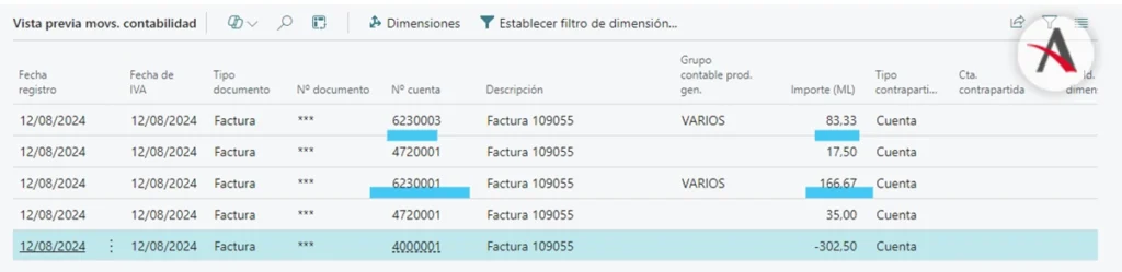 Haciendo la vista previa vemos la distribución y una vez realizados los registros, podemos ver un seguimiento a través de ‘Movs. de Cuentas Estadísticas’.