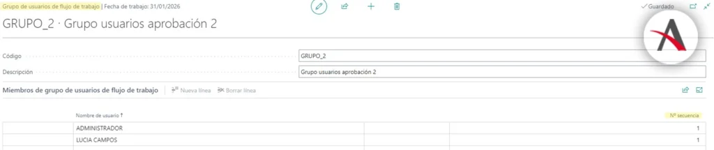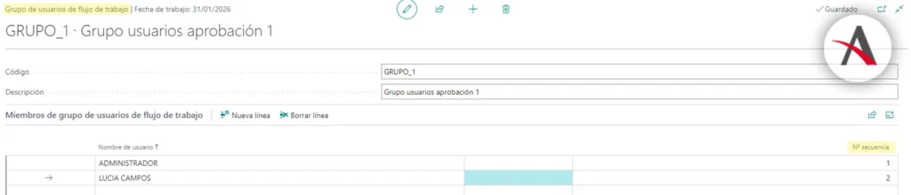 Si el campo ‘N.º secuencia’ tiene el mismo número asignado para varios usuarios, define que la aprobación solo será válida cuando todos los aprobadores con ese mismo número hayan completado su aprobación.