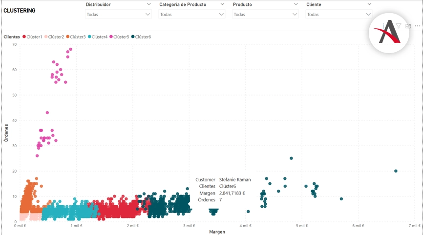 Identifica grupos y patrones naturales en los datos que facilitan decisiones más estratégicas.