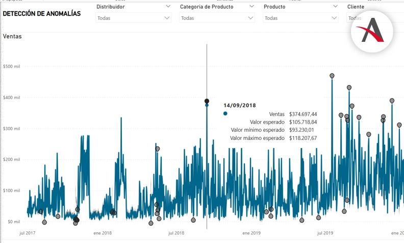 Power BI 2025 potencia el módulo de AI Insights, que permite identificar desviaciones o patrones atípicos de forma automática. Esto es clave en áreas como control de presupuestos, previsiones de ventas o alertas de fraude, donde detectar una anomalía a tiempo puede marcar una gran diferencia.
